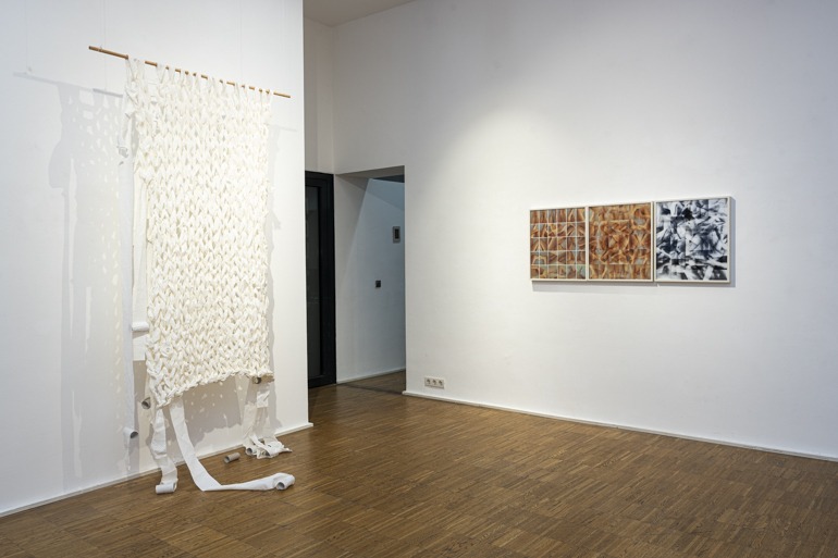 Auch Irma Kapeller hat ihr Werkmaterial dem echten Leben entnommen. Das verstrickte Toilettenpapier