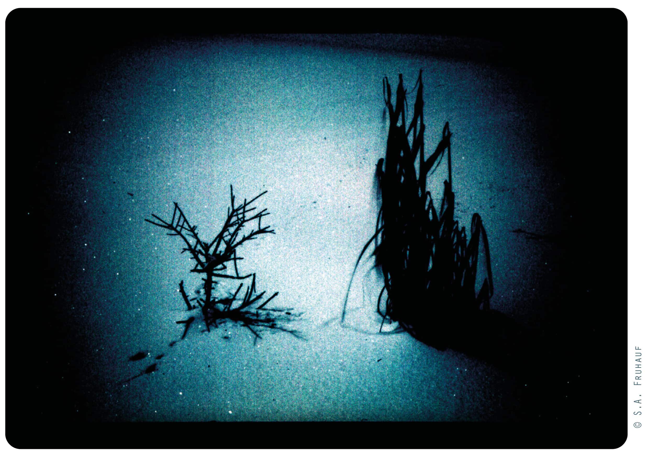 „Sie und er schütteln bejahend die Köpfe, grinsen und biegen in eine hell erleuchtete Seitengasse ab. Sie und er werden in diesem Text verschwunden bleiben, trotz breitangelegtem Suchprogramm. In der Zwischenzeit häufen sich auf der Zeitachse naturnahe Entbehrungen, lassen reden, was da liegt, ungeordnet und gierig nach Sinn und Struktur, während Unzumutbares glaubhafte Gegenbeweise bringt, die im Gewimmel der künstlichen Euphorie untergehen und auf der Stelle treten müssen.“