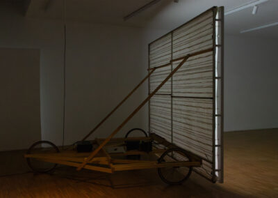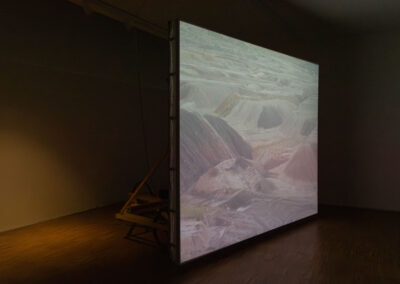 Eginhartz Kanter arbeitet meist im Kontext des öffentlichen Raums. Ausgangspunkt für seine Projekte sind dabei Situationen, die er auf Streifzügen durch den Stadtraum und die Peripherie aufspürt. Seine neue Arbeit Conveyor (2025) nimmt die Betrachter*innen mit auf eine Reise durch Landschaften von surrealer Schönheit. Braunkohletagebaue, denen Wälder und ganze Orte weichen mussten und müssen, bilden die Grundlage für dieses apokalyptische Landschaftsportrait, das in der MAERZ Galerie erstmalig als Filminstallation zu sehen sein wird.