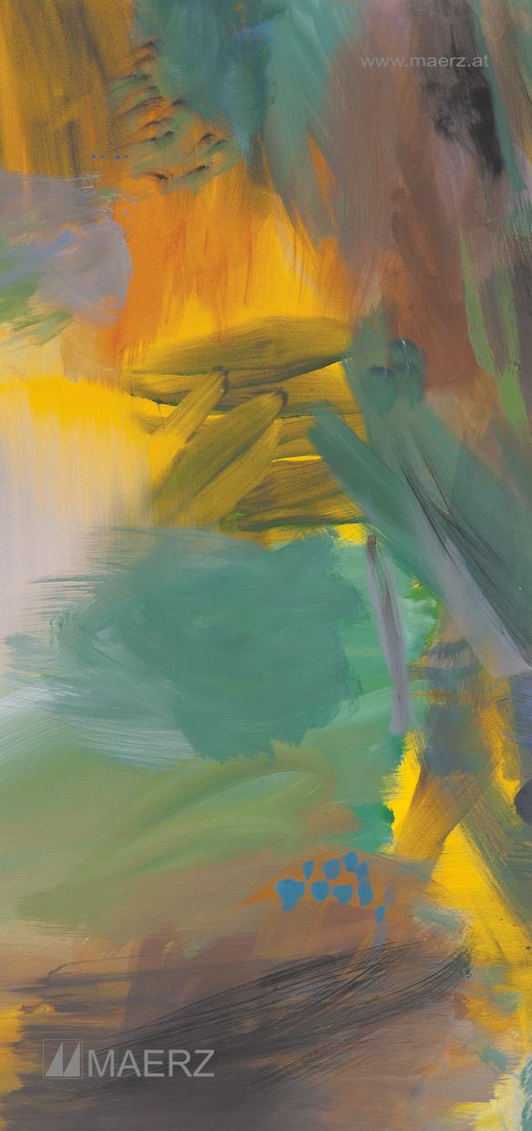 Ich meine, was die Arbeiten Katja Vassilievas sowohl vor als auch nach der großen Zäsur auszeichnet, ist diese energiegeladene Dynamik, die – nach Überwindung der nachvollziehbaren Beeinträchtigung durch dieses tragische Ereignis (man stelle sich vor, ein ganzes Werk ist vernichtet!) – geradezu offensiv daherkommt. Auf oft klaren, unvermischten Farbgründen bündelt sie in einem strark gestischen Duktus wahre Farbcluster, die Zeichen setzen. Man kann von abstraktem Expressionismus sprechen, ausgeführt in einem a-perspektivischen Bildraum. Der Wirklichkeitsgehalt der Bilder liegt im Sichtbarmachen der malerischen Aktion, die über jede Begrenzung hinausdrängt.