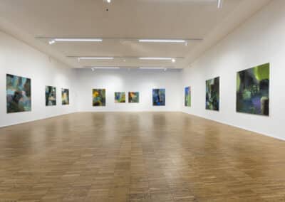 Was wir hier heute – und mit heute meine ich die aktuelle Zeitspanne der letzten 5 Jahre – also: was wir hier heute sehen, ist vor einem besonderen Hintergrund zu verstehen, es ist nicht der vorläufige Status Quo einer geradlinigen, vielleicht auch unaufgeregten künstlerischen Fortentwicklung. Das Gegenteil ist der Fall. Aber auch das wird Ihnen wahrscheinlich bekannt sein. Der große Bruch, die große Zäsur fand vor mittlerweile fast genau sechs Jahren statt, als ein Feuer den Großteil ihrer Arbeiten und jener von Ewald Walser vernichtete. Ein Ereignis, das nicht nur Katja selbst sehr lange zusetzte, sondern auch das nachfolgende, neue künstlerische Werk stark beeinflusste. Das können Sie einerseits gut auf Katjas Homepage nachverfolgen, was Sie dort aber nicht erkennen können, ist der sukzessive Wechsel des Malmittels: