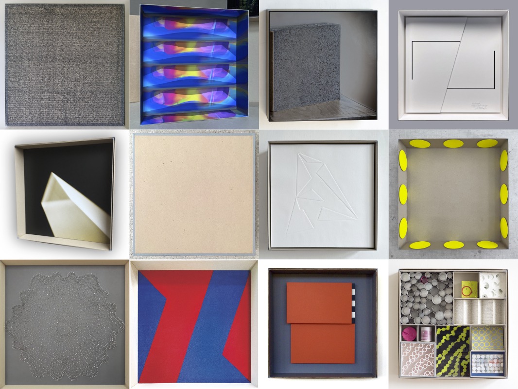 Idee der Ausstellung MAERZ-OSAS war es, die beiden Künstler_innen Vereinigungen möglichst vollständig zu präsentieren. Die OSAS widmet sich dem Ziel, die Kontinuität der geometrisch-konkreten Schule zu wahren. Die MAERZ versteht sich als interdisziplinär, ihre Spartenvielfalt macht sie zu einem Ort des Austausches künstlerischer Positionen. Von den 20 Mitgliedern der OSAS und den 200 der MAERZ, beteiligen sich nahezu 100 Künstler_innen aus dem Bereich bildende Kunst, aber auch aus den Sparten Musik und Literatur. Um den unterschiedlichen Arbeitsweisen gerecht zu werden und der Ausstellung dennoch eine einheitliche Struktur zu geben, bekam jede_r Künstler_in eine Box im Format 50x50x10 cm zur Verfügung gestellt. Diese Box konnte unterschiedlichst bespielt werden, indem sie entweder als Präsentationsfläche für eine oder mehrere Arbeiten, wie Malerei, genutzt oder auch als Ganzes gestaltet wurde. Sowohl die Möglichkeit der offenen Teilnahme, als auch das für alle gleiche Format der Box entsprechen Vasarelys Bemühen um eine Demokratisierung zeitgenössischer Kunst und seinem seriellen Ansatz.