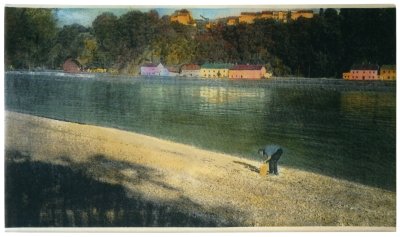 Die Serie mit den Titeln „an der donau“ zeigt immer einen Strandabschnitt mit unterschiedlichen Situationen im Breitformat. Die schwarz-weißen Siebdrucke wurden nachträglich handkoloriert. Dies lässt den Eindruck von älteren historischen Aufnahmen entstehen.