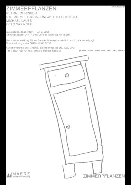 „Zimmerpflanzen“ ist der programmatische Titel dieser Ausstellung, getragen wird sie vom Thema Mobilar – des ästhetischen Ausdrucks der alltäglichen Distinktion bei gleichzeitiger Zweckmäßigkeit.